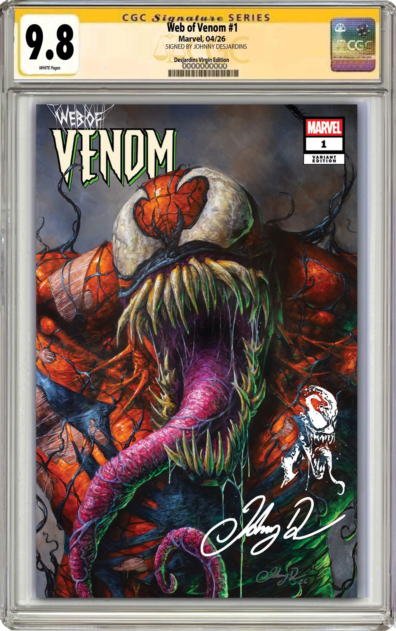 PREORDER: CGC 9.8 Web of Venom #1 Johnny Desjardins SIGNED & REMARQUED Exclusive Virgin Variant